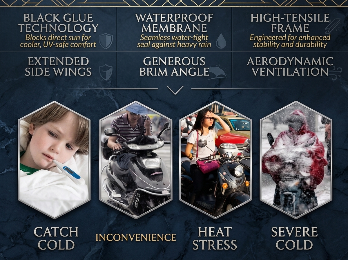 | Leg Protection Design | Integrated roll-up rain curtain (Convenient storage, effectively protects legs and feet) |